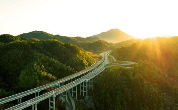 高速公路穿越秋阳映衬的茫茫竹海,构成一幅人文生态画卷。郭祥峰摄