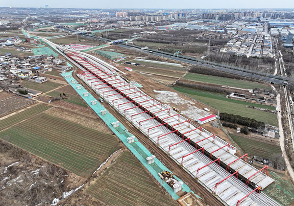 西安至延安高铁是陕北革命老区首条高速铁路,也是我国“八纵八横”高铁网包(银)海通道的重要组成部分。项目建成后,西安至延安的运行时间将从目前的2个半小时缩短至1小时左右。新华社记者 张博文 摄
