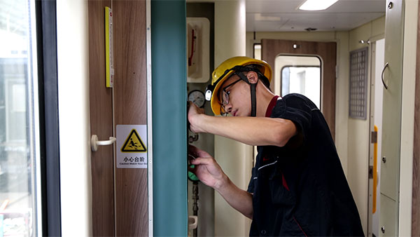 8月7日,国铁南宁局柳州机车车辆有限公司组装车间内一片忙碌,工人们正在对一辆已改造完成的适老化列车餐车进行通电试验。据悉,这趟适老化列车已完成部分硬卧、软卧车厢结构改造,通过加装多功能充电插座、坐便器、紧急呼叫按钮等“专属配置”,实现了安全性与舒适性的全面升级。