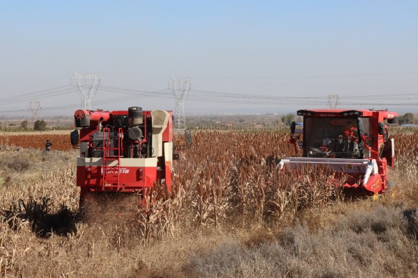 深秋时节,凉意渐浓。忻州市宁武县薛家洼乡高崖上村的田野间一片金黄,几台大型联合收割机开足马力在农田里轰鸣穿梭,进行切割、脱粒、秸秆粉碎等作业,全力抢收秋粮。