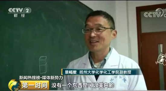 扬州大学化学化工学院副教授 景崤壁:说明书上的成分没有一样东西可以美白,但里面有一个东西叫做EDTA,这是个络合物,美白的功效是靠重金属,它用一个东西把重金属络合起来,形成白色的东西,在皮肤上可以起到遮盖的作用。