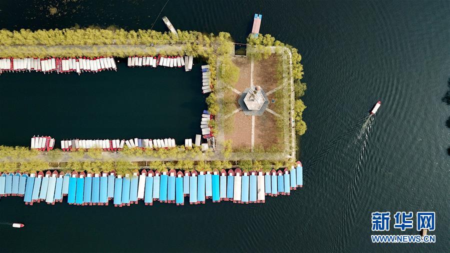 3月30日无人机拍摄的白洋淀旅游码头。新华社记者 牟宇 摄