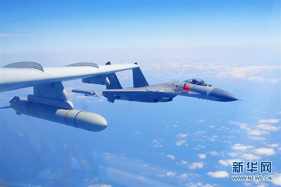 4月26日,人民空军轰-6K等多型战机实施“绕岛巡航”训练课题。人民空军26日出动轰-6K等多型多架战机,绕飞祖国宝岛,用战机航迹丈量祖国大好河山。 新华社发(翟培松 摄)