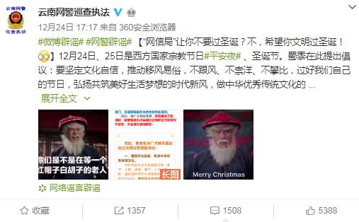 (原标题:“网信局要求不准发庆祝圣诞节信息”?警方辟谣)
