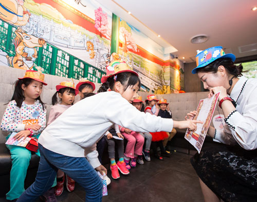 4月23日,北京东直门必胜客迎来了一群与众不同的“客人”,他们就是故宫屋脊上的“神兽们”。这是御鉴文化联合北京必胜客共同举办的“春风百里,共品书香”线下亲子共读活动,活动以故宫宣教2018年强力打造的非遗原创绘本《哇!故宫的二十四节气·春》为共读书目,而脊兽们就是绘本的主人公。