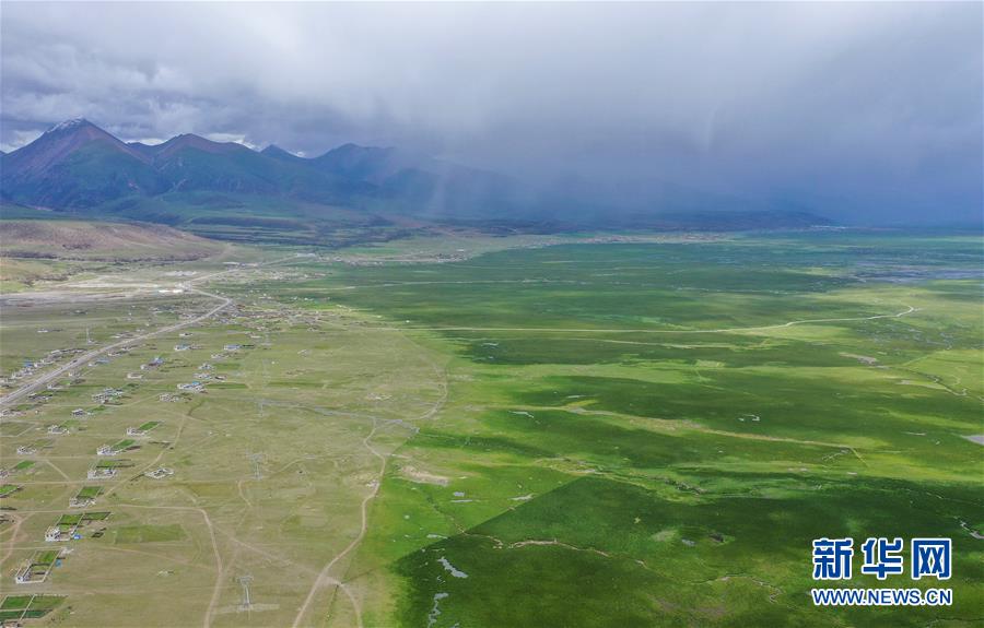 这是西藏当雄县境内的草原(8月9日无人机拍摄)。进入雨季,藏北当雄县境内的牧场水草丰美,牛羊膘肥体壮。藏北地区是西藏重要的畜牧业产区之一,产自藏北地区的酥油、酸奶、牛羊肉等产品销往各地,是当地牧民的主要收入来源。新华社记者 普布扎西 摄