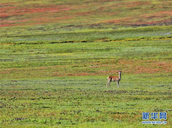 一只藏原羚在草原上驻足(8月14日摄)。 新华社记者 张大川 摄
