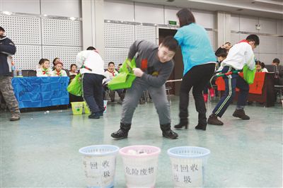 在《垃圾分类与回收》课堂上,哈尔滨市环境宣教信息中心的邢晨老师带领孩子们参观哈尔滨市生态文明教育展馆后,为孩子们提出了问题,让孩子们在展馆中寻找答案。孩子们自发组成了“环保课题组”,三四人合作,有人找题目,有人记录答案,并派代表在大家面前阅读成果。