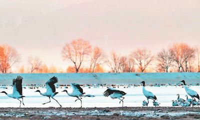 西藏自治区是青藏高原的主体,地势高峻,地理特殊,野生动物资源丰富。图为西藏拉萨市林周县境内的黑颈鹤。 |
