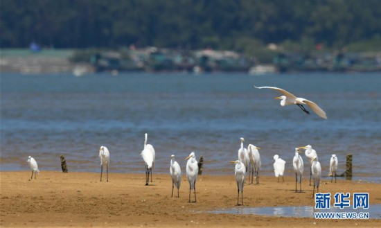 随着北方气温下降,候鸟陆续南飞。位于海南省儋州市光村镇的光村银滩,迎来鹭鸟、中杓鹬、三趾滨鹬等候鸟。