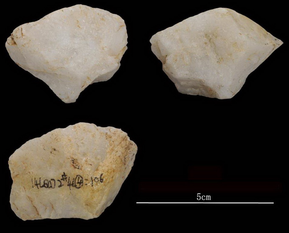 这是栾川龙泉洞旧石器遗址出土的石核(资料照片)。 新华社发