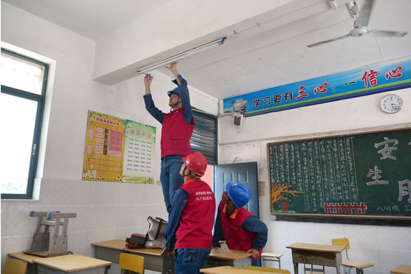 8月28日,国网昌北供电公司党员服务队来到江西南昌经开区英雄学校开展安全用电检,为即将到来的“开学季”用电保驾护航。