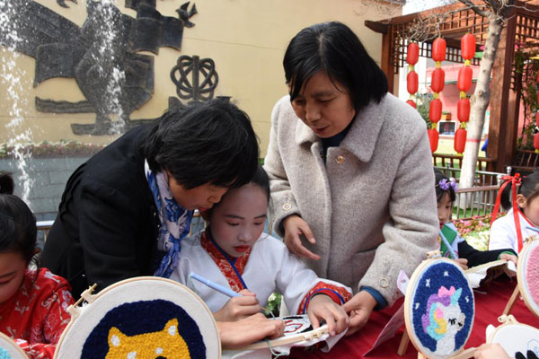 活动现场,有的学生身穿古装弹奏古筝,专注的眼神、熟练的指法尽显古风古韵;有的学生手握画笔,绘出梦想,创作出一幅幅生动的农民画作品;有的学生现场制作,巧手做出蒲扇、花篮等手工创艺品;还有3D打印、书法、环保秀等等......最惹人注目的当属“戳戳绣”,一个个用毛线做成的小猫、洋娃娃等造型,学生们一针一线的钩出来,真是活灵活现。“这是我们学校两位老师创办的社团,也是鄠邑独一无二的。两位老师酷爱手工编织,她们通过戳戳绣社团,不仅让孩子们掌握到了手工编织技能,还达到了传承传统工艺的目的。”副校长肖丹介绍道。