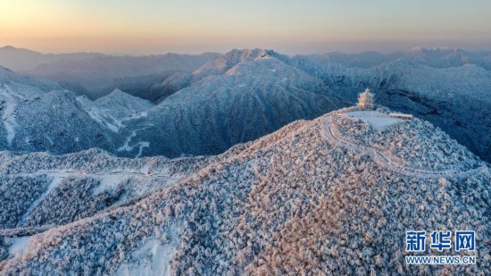 连续几场瑞雪将川陕交界的汉中市南郑区龙头山景区,变成漫山雾凇的童话世界。