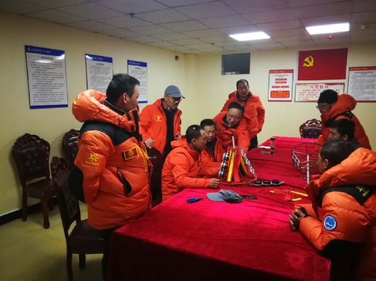 图为2020珠峰高程测量团队讨论工作