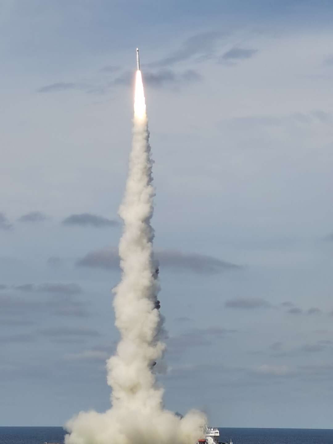 9月15日,长征十一号运载火箭在黄海海域,“一箭九星”发射成功(王伟童 摄)