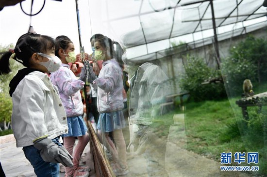6月1日,小朋友在西宁野生动物园内参观。新华社记者 张龙 摄