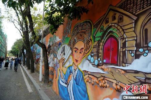 4月17日,在福州烟台山特色文化街区,一组以“烟台闽韵”为主题的涂鸦壁画成为文化街区的一道新风景,吸引了许多市民驻足欣赏。
