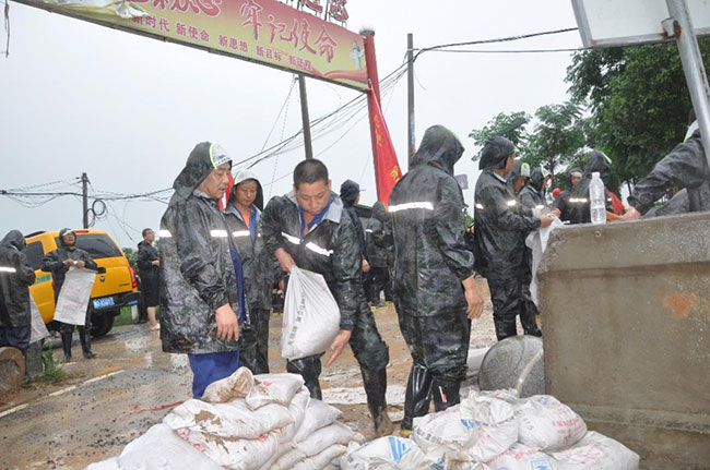 卫辉天瑞水泥公司在7月21日向卫辉市防汛指挥部无偿支援物资,出动近700车次,将2.4万吨石灰石、5750吨成品骨料、20万条编织袋、25吨水泥紧急运送到卫河和孟姜女河两岸。并成立75人防汛抢险突击队,到汛情一线参与抢险。