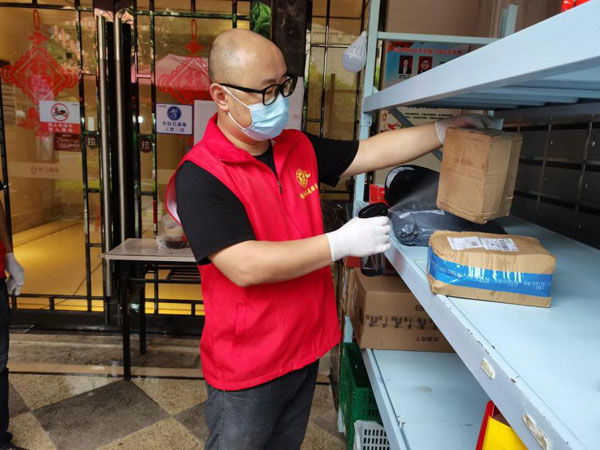 驻守封控管理楼栋,每天定时消杀百余外卖和快递