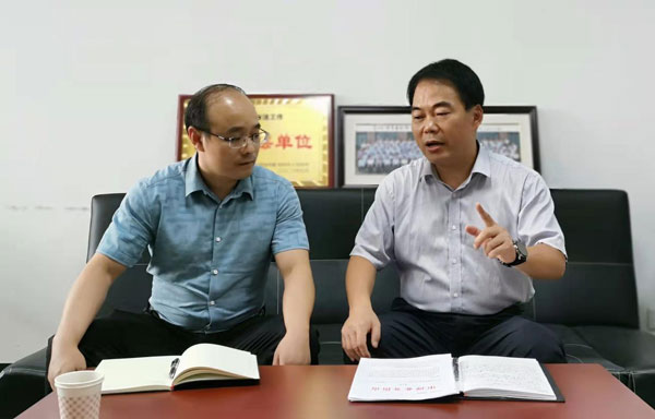 图为该组负责人向邳州市政协委员朱飞鹏“一对一”征求驻在单位存在的问题