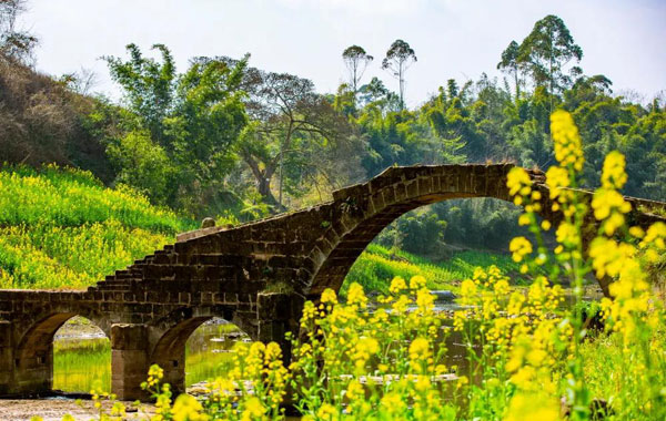其实,民国时期茫溪河上的石桥几乎都为盐商捐资兴建,既有利交通,同时便民。梳金滩桥,这个隐于乡村的特色小桥,呈现在春光明媚的乡野。(文/王中其 摄影/章綦)