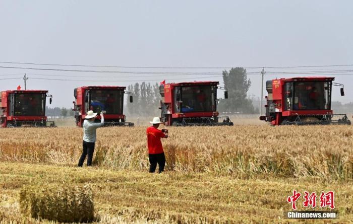 资料图:小麦开镰现场。中新社记者 翟羽佳 摄