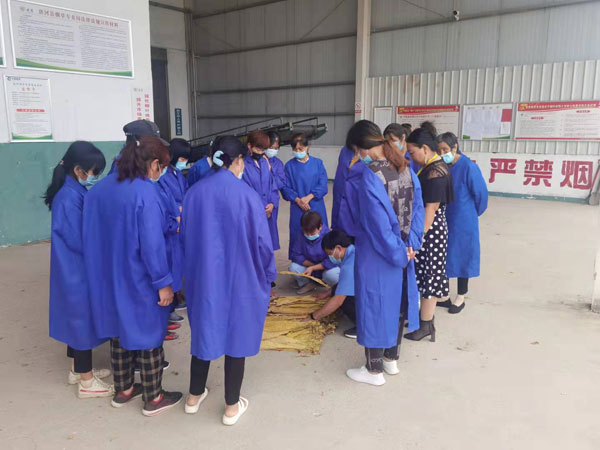 唐河县烟草分公司王集烟叶收购点召开例会,校对收购眼光。(郭林坡供图)
