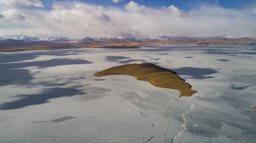每年高原最冷的时刻,普莫雍错封冻成冰湖。