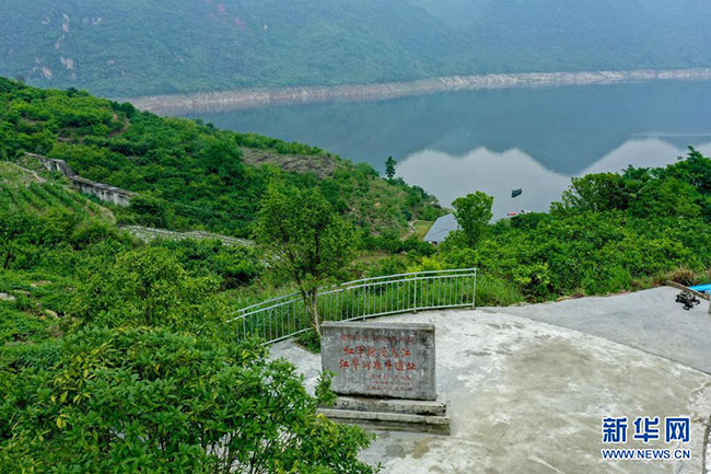 红军抢渡乌江江界河战斗遗址纪念碑(5月20日摄,无人机照片)。新华社记者 欧东衢 摄