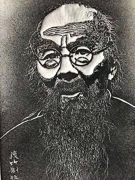 研创石版三维人物肖像版画的赵同泽,从儿时起,就喜欢在胶泥上刻画。一把凿刀、一块石头,刻画了60余年。