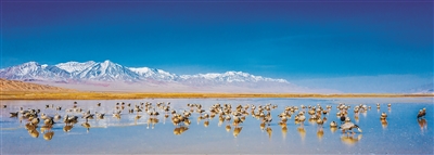 雪山下,党河初融,候鸟回家 孟根朝力摄