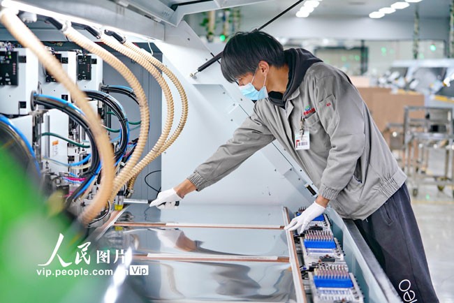 2022年12月19日,工人在江西省龙南市经济技术开发区的鼎泰电子科技有限公司生产车间赶制出口电路板订单。临近岁末,当地许多企业开足马力赶制订单,确保完成年终目标任务。