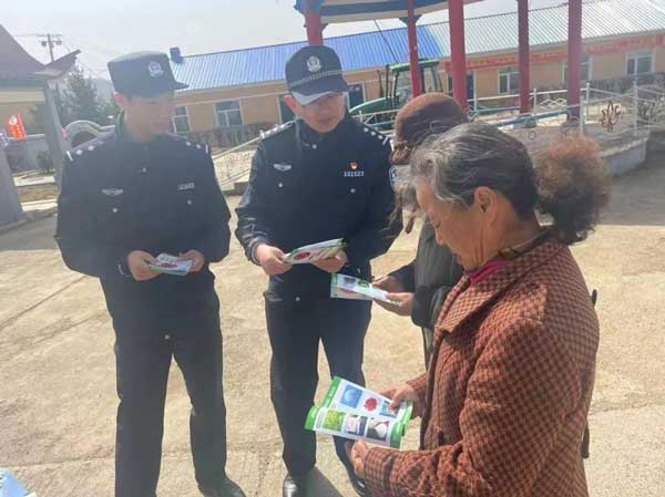 4月21日,黑龙江省林区公安局穆棱分局按照“天目——2023”禁种铲毒工作方案,深入辖区开展禁种铲毒宣传活动,有效防范打击毒品原植物种植行为,从源头上禁绝毒品、铲除隐患,持续巩固穆棱林区毒品原植物“零种植”“零产量”战果。