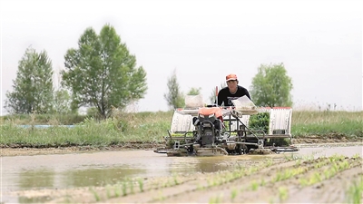 朔城区桑干河畔千亩水稻种植基地,种植户在插秧(摄于去年6月)。 刘 磊摄(人民视觉) |