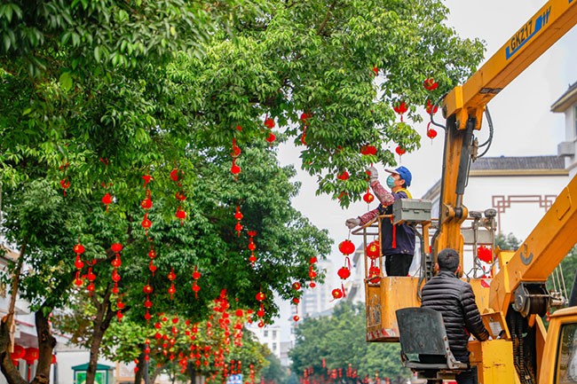 人民网全南1月10日电 随着农历新年的日益临近,江西省赣州市全南县的年味儿也越来越浓,中心城区主干道路挂起了红灯笼,处处洋溢着喜庆的节日氛围。(邱烨、李凡钦)