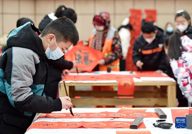随着春节临近,各地开展各式各样的写春联送祝福活动,营造喜庆的节日氛围。