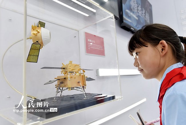 2023年5月16日,2023“时光博物馆”流动展,亮相江苏扬州运河三湾景区。据悉,本次展览通过“辉煌征程”“数字未来”“中国坐标”“星辰大海”“美美与共”“追梦新时代”六大主题展区,全方位盘点新时代十年非凡成就。“复兴号”高铁、“天宫”空间站、可涂装的盾构机、可“云游”的长城、古今融合的《新千里江山图》、AR观影……实物+影像+互动体验,“时光博物馆”精彩纷呈。庄文斌摄(人民图片网)