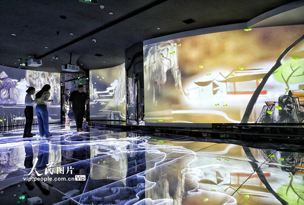 2023年10月25日,江苏省张家港市黄泗浦生态公园长江文明数字馆,观众在参观“江海奇幻游——长江文明与海上丝绸之路”开放式博物馆特展。该特展通过“室内数字展+室外艺术装置展”两大部分对长江文明、海上丝绸之路进行阐述,开放式展示长江文明和海上丝绸之路文化内涵。本次展览将持续至12月底。施柏荣摄(人民图片网)