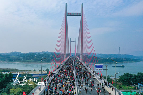2023年11月30日零时,四川省泸州市纳溪长江大桥正式通车。11月29日12时,纳溪长江大桥面向市民开放,成千上万的市民走上大桥,用“踩桥”的方式庆祝大桥建成。