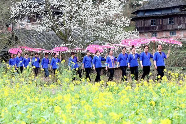 3月16日,广西三江侗族自治县八江镇归令村六更屯举办梨花节,当地群众以采春茶、侗服走秀、多耶、百家宴等丰富节目,尽展传统村落多彩风情,吸引众多游客前往观赏体验。阳春三月,该屯上千株梨树迎春怒放,盛开的梨花与当地独具特色的吊脚木楼群交相辉映,美不胜收。