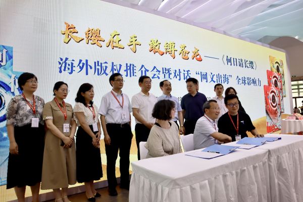 开幕式当天,在安徽馆举行的长篇网络小说《何日请长缨》海外版权推介会上,多位出版名家、业界专家、行业学者以书为媒,共同探讨中国网络文学全球化发展现状及未来趋势。