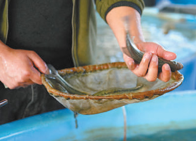 倪闯在查看鱼卵培育情况。