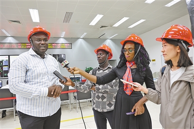中加记者在深能安所固电力(加纳)有限公司中控室采访加方工程师。