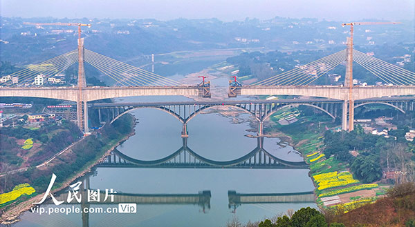 四川泸州沱江铁路特大桥作为隆黄铁路(隆昌至叙永段)扩能改造工程的重点控制性工程之一,全长2408.72米。隆黄铁路隆叙段扩能改造工程是国家《西部陆海新通道总体规划》重要项目,线路北起成渝铁路隆昌站,与在建叙毕铁路、毕黄铁路等贯通。项目线路全长138.6公里,是四川省南向出海最便捷的货物运输通道,也是成渝、川南地区与北部湾地区快速货物交流的通道。刘学懿摄(人民图片网)