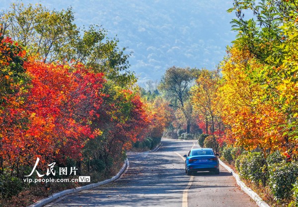 2024年11月6日,山东省枣庄市薛城区凤凰绿道色彩斑斓,风景如画。