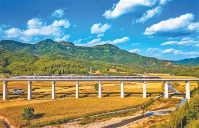 9月28日,列车行驶在沈佳高铁沈白段上。