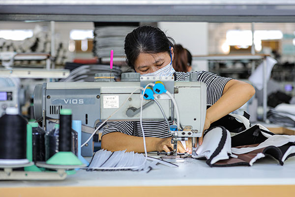 10月10日,广西桂林市灵川县定江镇,生产线上工人正在赶制订单。阳海翔 摄
