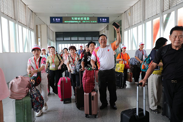 从中国铁路南宁局集团有限公司获悉,10月11日15时10分,首趟“桂行天下号”普惠适老化旅游专列驶出广西玉林站,678名旅客将在玉林、贵港、柳州、金城江等车站陆续上车,开启为期10天的西北之旅,在秋日里欣赏西北美景。