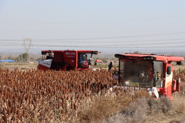 深秋时节,凉意渐浓。忻州市宁武县薛家洼乡高崖上村的田野间一片金黄,几台大型联合收割机开足马力在农田里轰鸣穿梭,进行切割、脱粒、秸秆粉碎等作业,全力抢收秋粮。